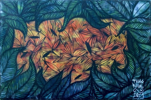 Reproduction sur plexiglass de la peinture de THIAGO RITUAL pour le festival Pav'Art 2021